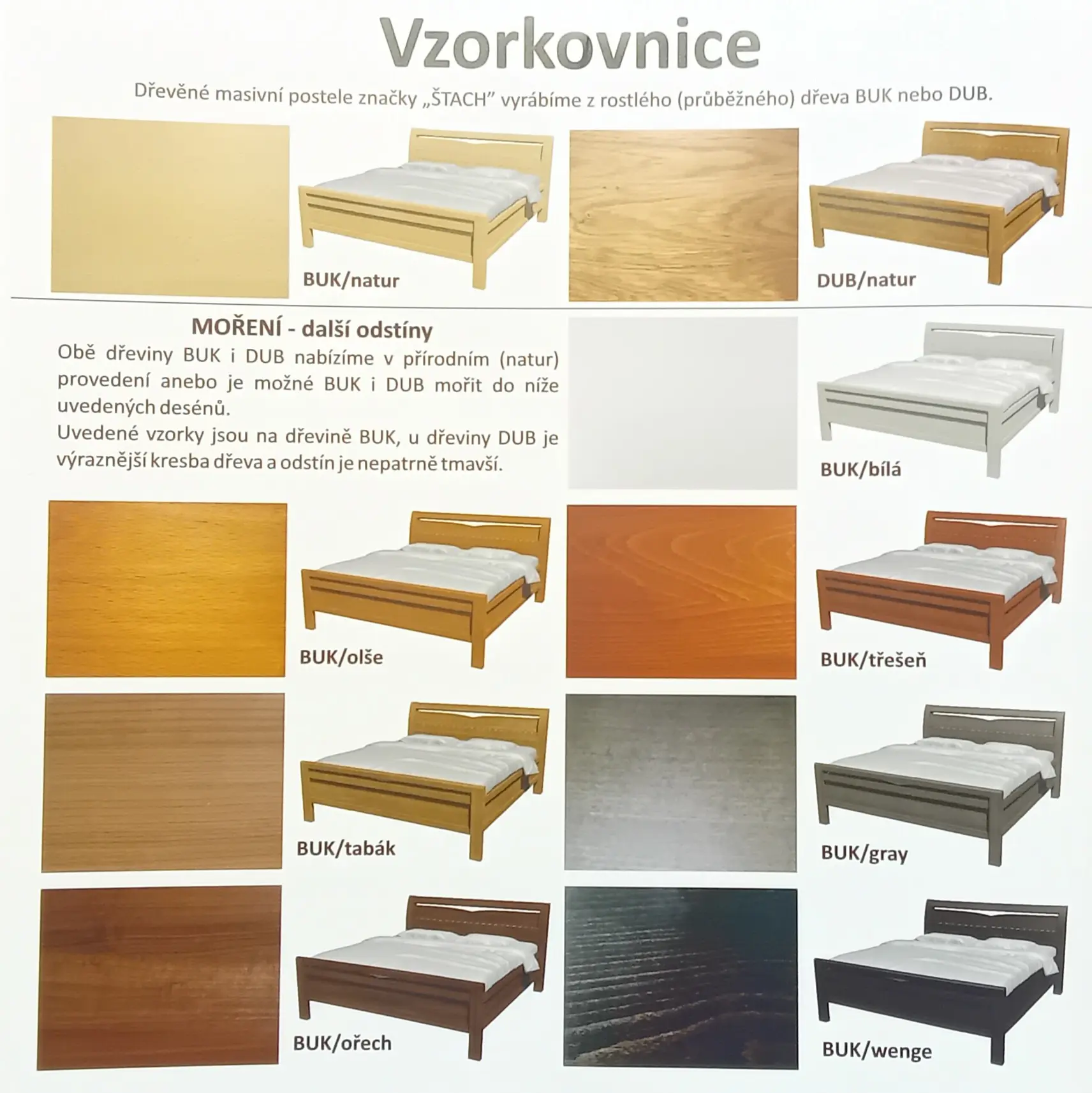 Tuto postel vyrábíme v dřevinách BUK nebo DUB v několika odstínech moření.