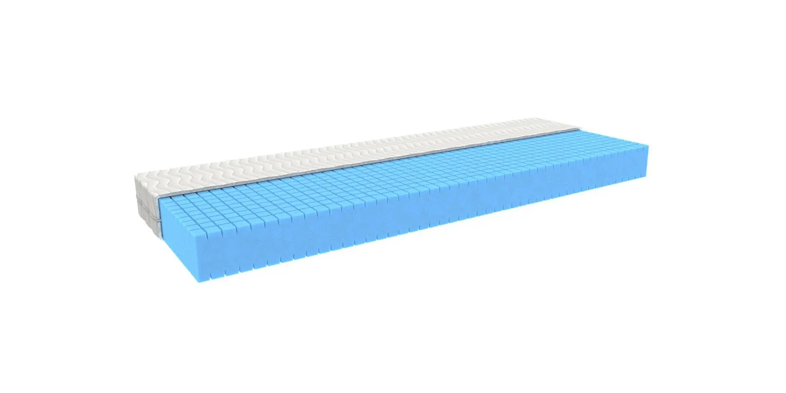 Bílá strečová látka je prošitá vrstvou PES rouna. Je opatřena zipem s možností praní na 60 °C. Svojí měkkostí podstatně zvyšuje komfort ležení. Je alergicky neutrální.