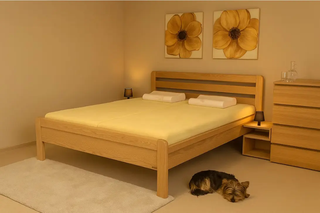Tuto postel vyrábíme v dřevinách BUK nebo DUB v několika odstínech moření.