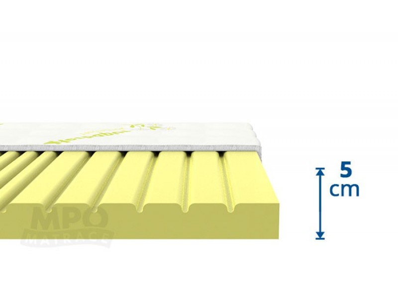 Bílá strečová látka je prošitá vrstvou PES rouna. Je opatřena zipem s možností praní na 60 °C. Svojí měkkostí podstatně zvyšuje komfort ležení. Je alergicky neutrální.