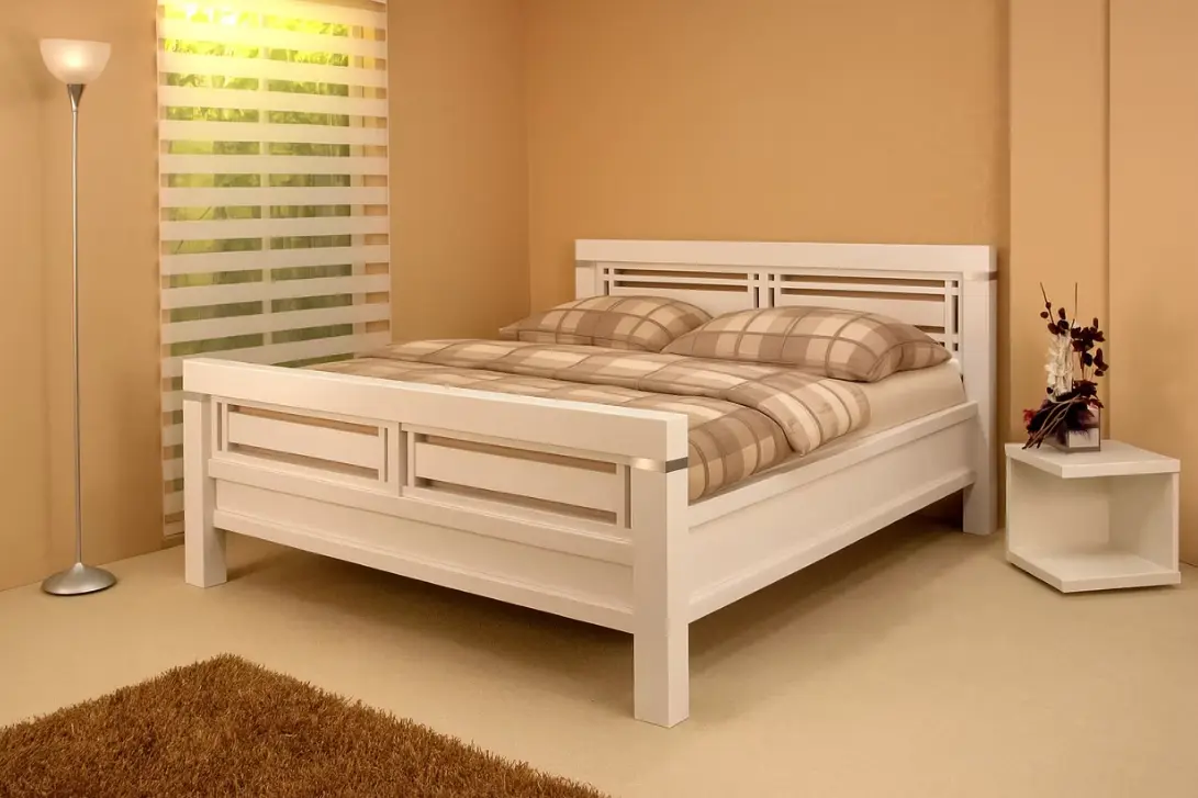 Manželská postel Elizabeth je top masivní postel v naší nabídce. Hlavní konstrukce je tvořena hranoly 9×10 cm, které zabezpečují posteli maximální pevnost a stabilitu. Součástí postele je prostorný, vestavný úložný prostor.