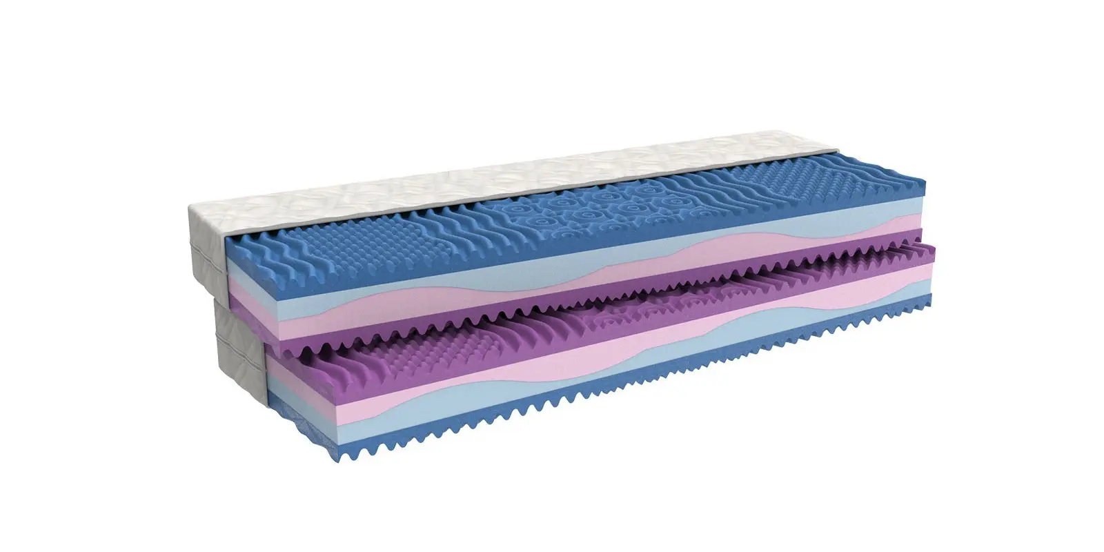 Lehací část matrace z elastické eukalyptové HR pěny je profilovaná do 7 anatomických a zón působí na všechny křivky těla.