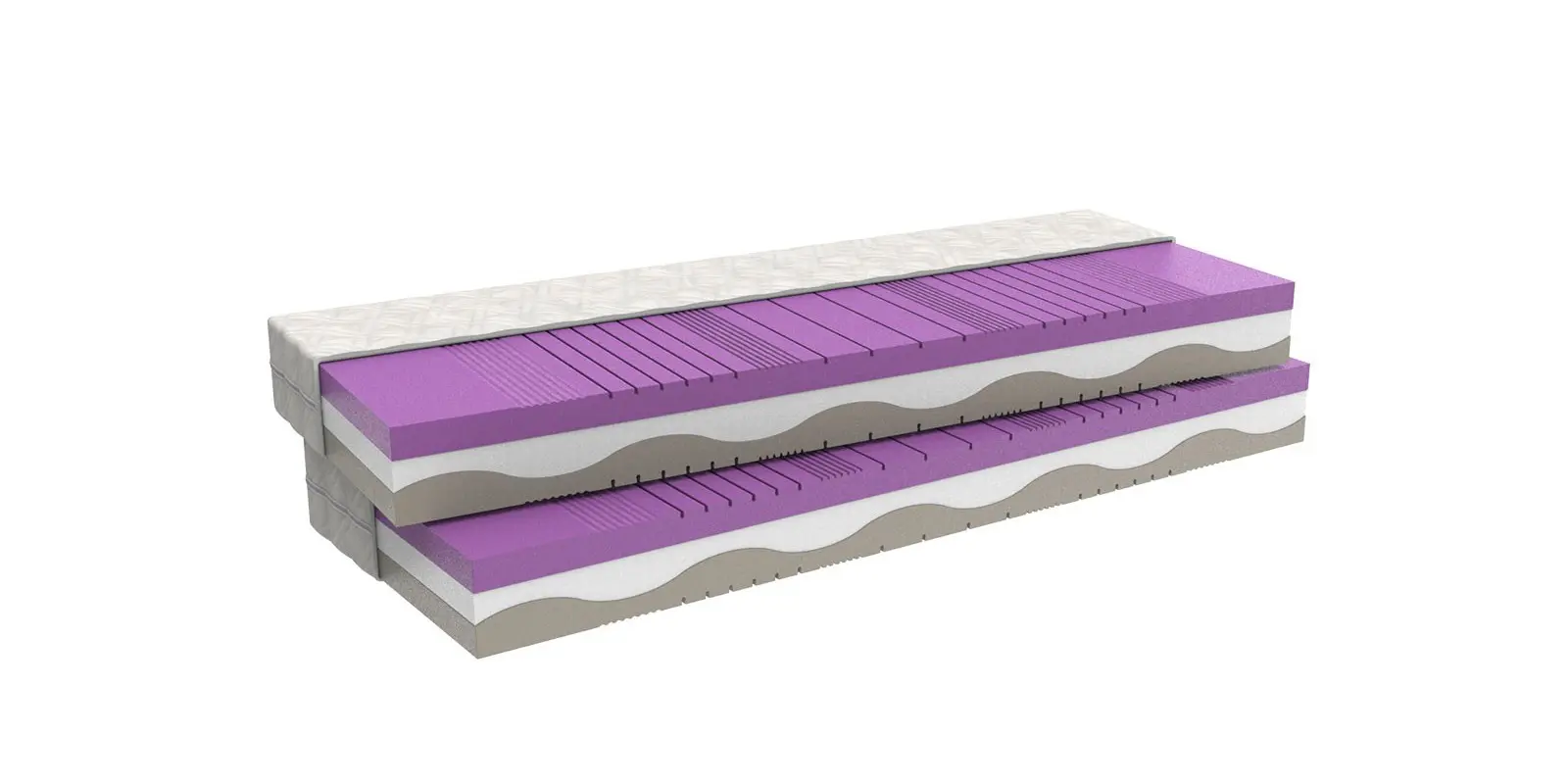 Bílá strečová látka je prošitá vrstvou PES rouna. Je opatřena zipem s možností praní na 60 °C. Svojí měkkostí podstatně zvyšuje komfort ležení. Je alergicky neutrální.
