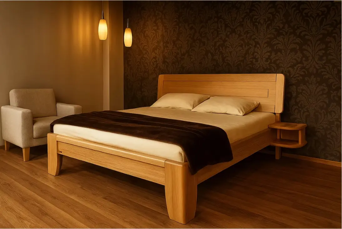 Tuto postel vyrábíme v dřevinách BUK nebo DUB v několika odstínech moření.
