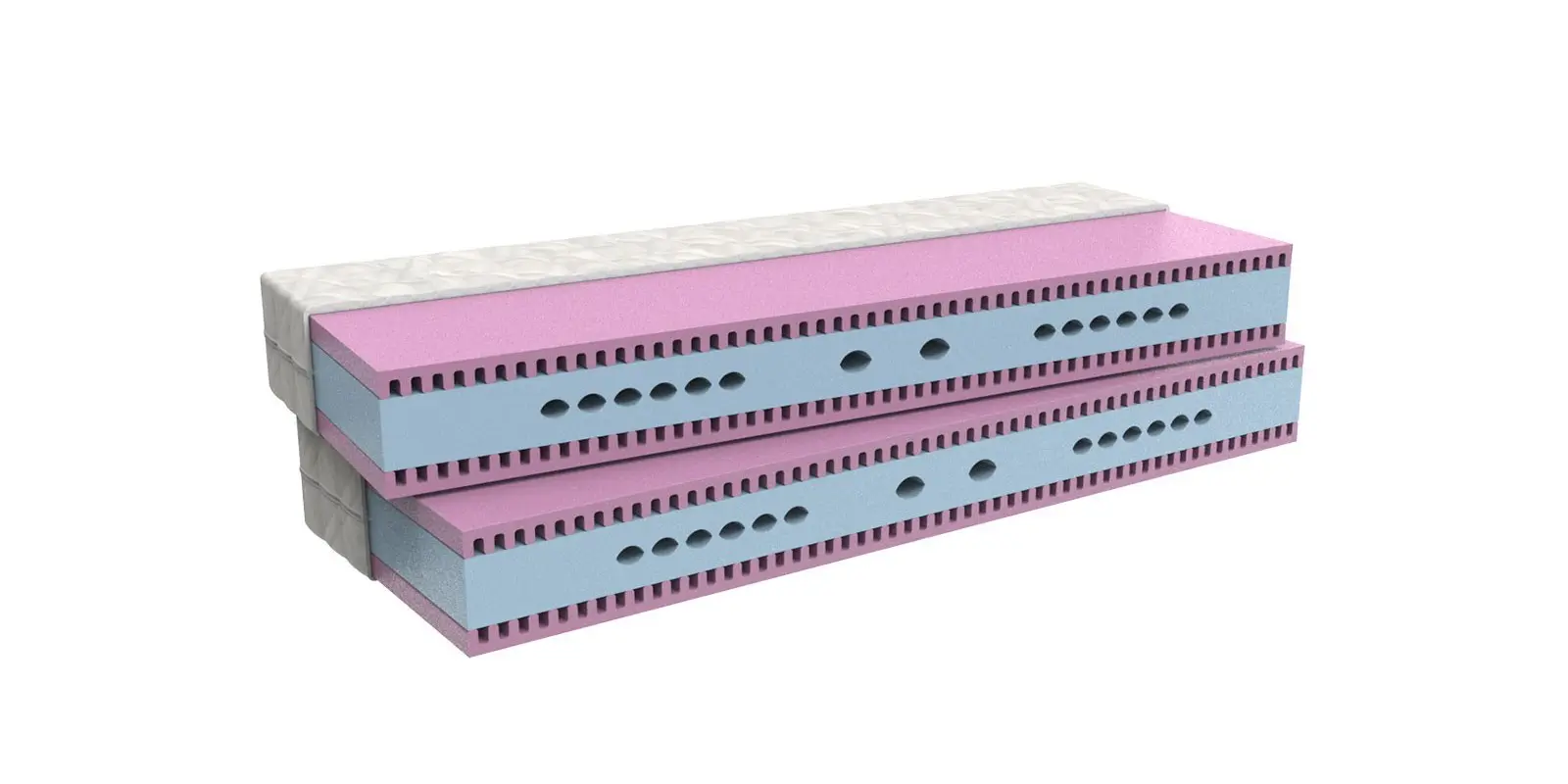Bílá strečová látka je prošitá vrstvou PES rouna. Je opatřena zipem s možností praní na 60 °C. Svojí měkkostí podstatně zvyšuje komfort ležení. Je alergicky neutrální.