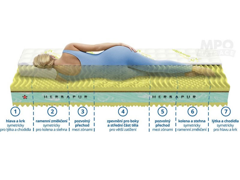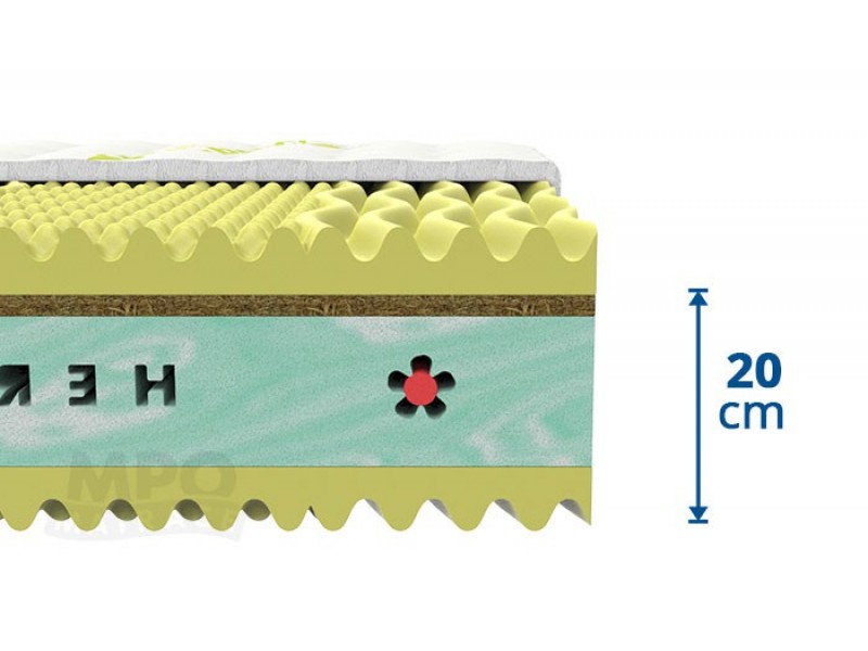 Komfortní partnerská matrace. Pěny s heřmánkovým extraktem jsou profilované do 7 anatomických zón. Díky vrstvě ze 100% přírodních vláken z Agáve má každá strana matrace jinou tuhost. Střed matrace je vyrobený materiálu BIOGREEN s obsahem extraktů z vlny, lnu a kokosových ořechů. Matrace je vhodná pro děti i dospělé.