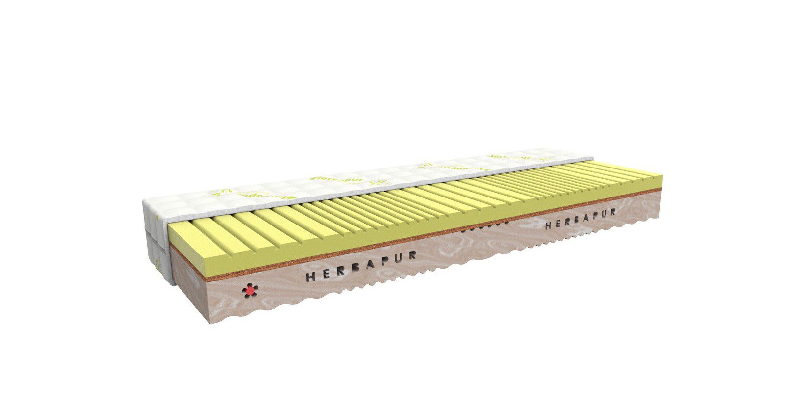 Herbapur H Esence je 5zónová zátěžová partnerská matrace o 2 tuhostech. Tvoří ji příčně profilovaná heřmánková viscoelastická pěna a značková BioGreen pěna.