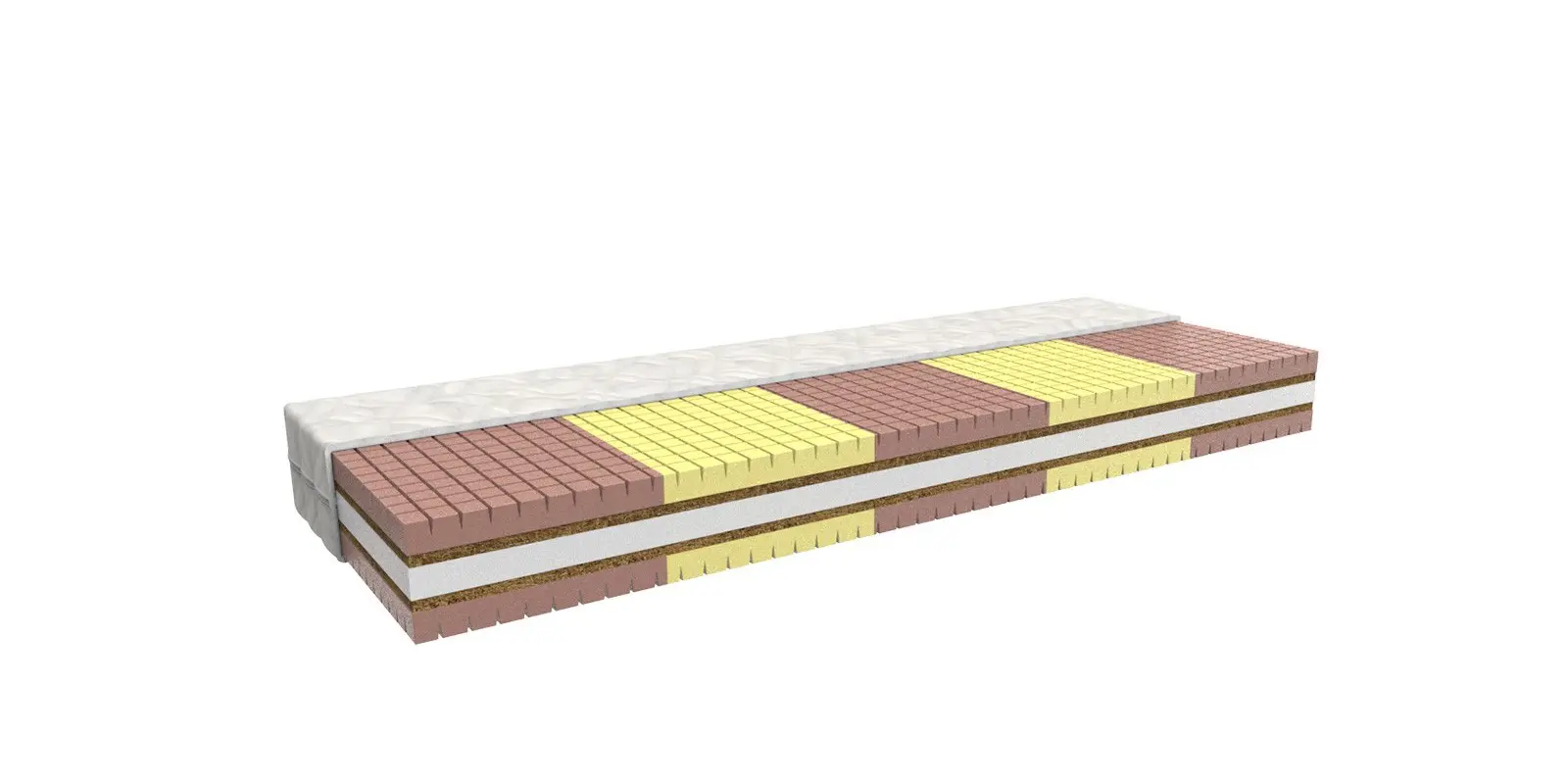 Bílá strečová látka je prošitá vrstvou PES rouna. Je opatřena zipem s možností praní na 60 °C. Svojí měkkostí podstatně zvyšuje komfort ležení. Je alergicky neutrální.