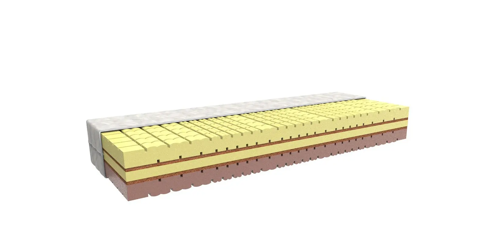 Bílá strečová látka je prošitá vrstvou PES rouna. Je opatřena zipem s možností praní na 60 °C. Svojí měkkostí podstatně zvyšuje komfort ležení. Je alergicky neutrální.