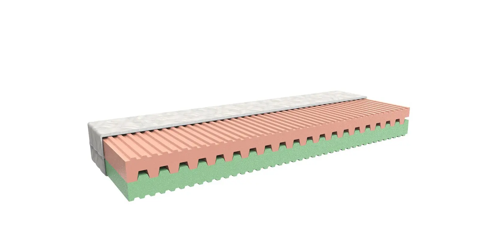 Matraci Tina o dvou tuhostech tvoří 2 typy tepelně modifikovaných PUR pěn. Díky hřebenovému systému dobře reaguje na křivky těla a zajišťuje pohodlí v každé poloze.