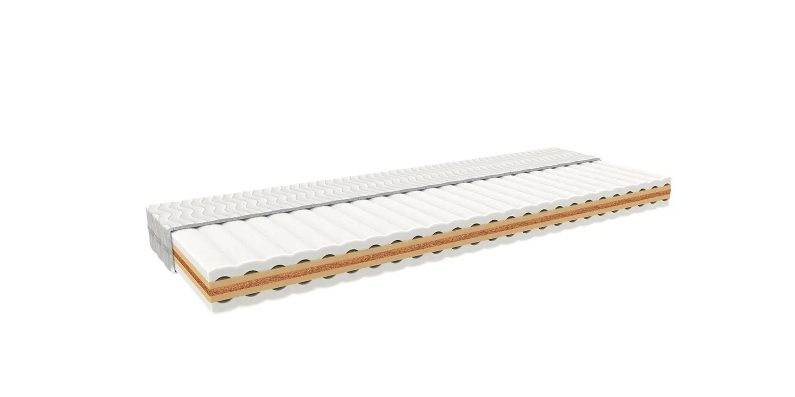 Bílá strečová látka je prošitá vrstvou PES rouna. Je opatřena zipem s možností praní na 60 °C. Svojí měkkostí podstatně zvyšuje komfort ležení. Je alergicky neutrální.