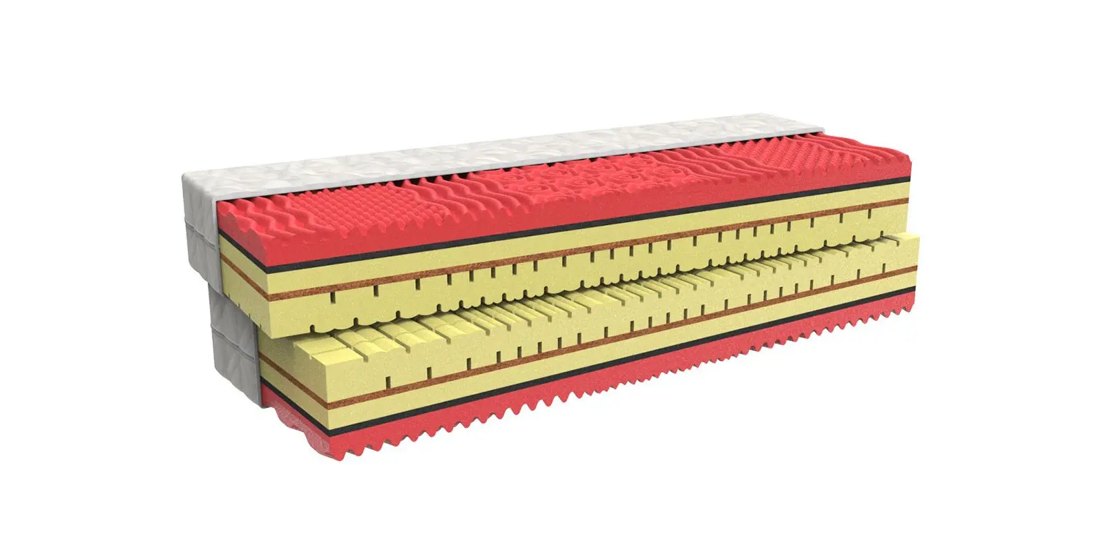Ortopedická 7zónová partnerská matrace s koňskými žíněmi 1+1 Horse Active je vyrobena ze špičkových materiálů – koňských žíní, HR studené pěny a PUR pěny.