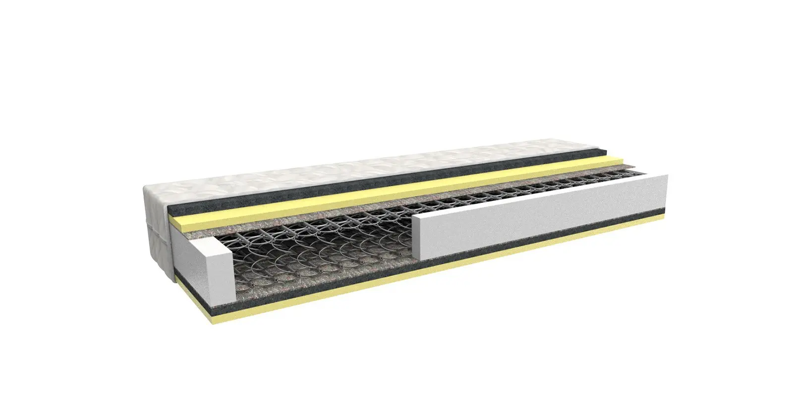 Bílá strečová látka je prošitá vrstvou PES rouna. Je opatřena zipem s možností praní na 60 °C. Svojí měkkostí podstatně zvyšuje komfort ležení. Je alergicky neutrální.