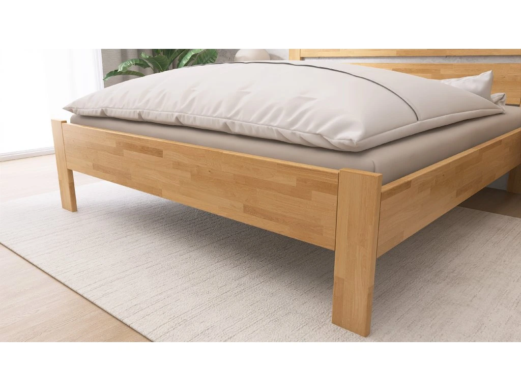 Postel vyrobena z bukového masivu. Nohy z 30mm masivu a vodorovné výplně 30mm. Všechny vnější hrany postele zaoblené. Možnost polohování výšky uložení roštu. Povrchově upraveno bezbarvým UV lakem s vysokou odolností a barevnou stálostí s možností moření.